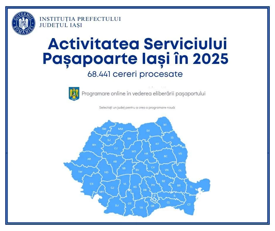 Acasă Administrație 68441 cereri procesate de Serviciul Public Comunitar de Pașapoarte în anul 2025