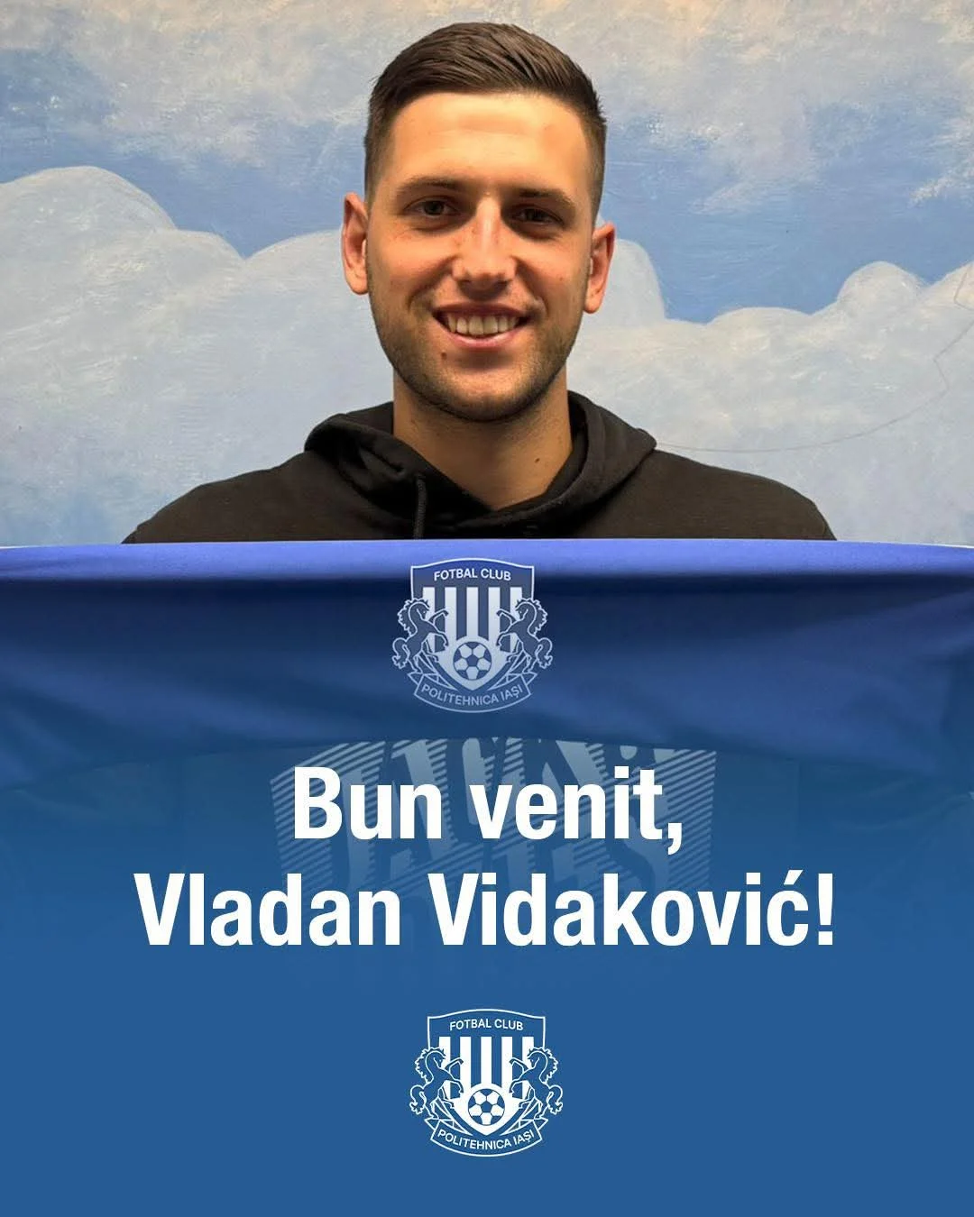Mult succes în alb-albastru, Vladan! Suntem convinși că vei aduce forță și echilibru la mijlocul terenului. 💪