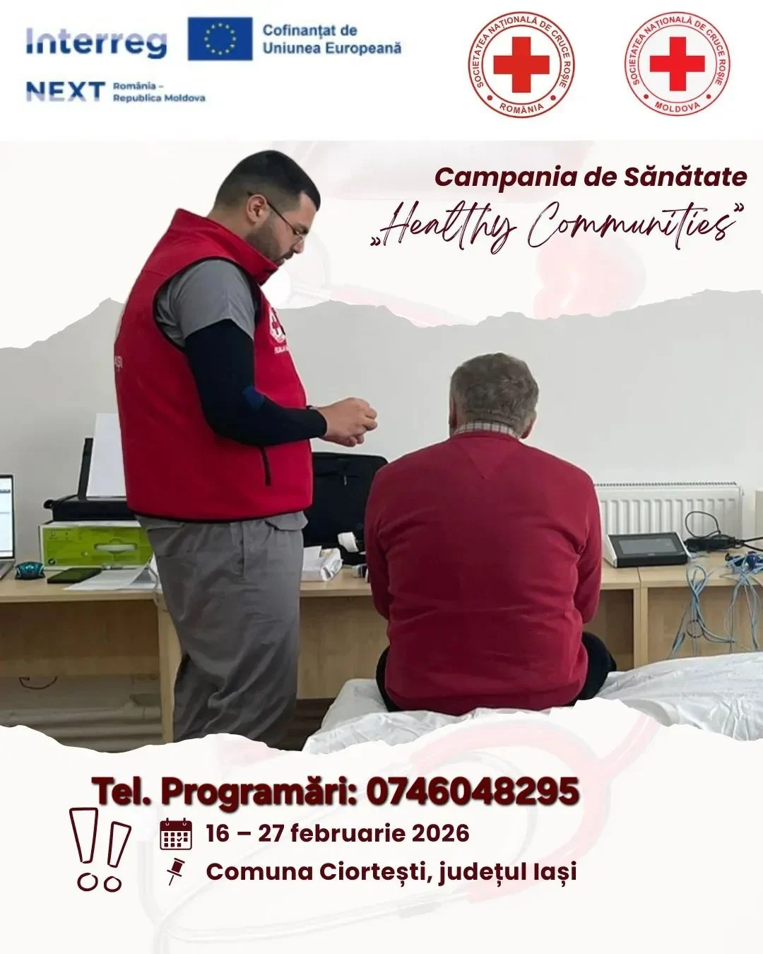 Primăria Comunei Ciortești anunță desfășurarea Campaniei de Sănătate „Healthy Communities”, în parteneriat cu Crucea Roșie Română – Filiala Iași, în perioada 16–27 februarie 2026, la sediul Ambulanței de lângă Primăria Ciortești!