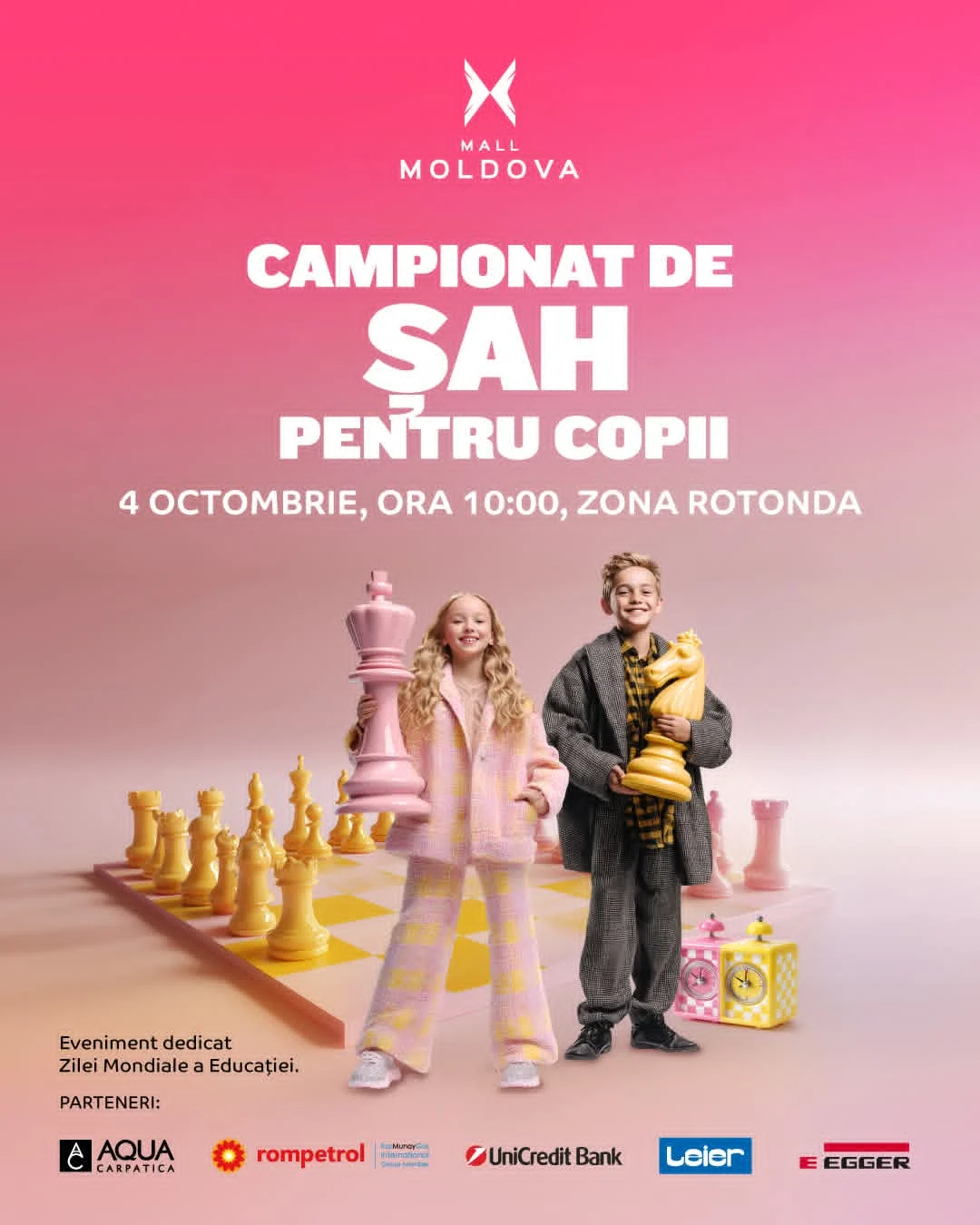 ♟️ Mall Moldova găzduiește un eveniment special, dedicat Zilei Mondiale a Educației: un campionat de șah pentru copii!
