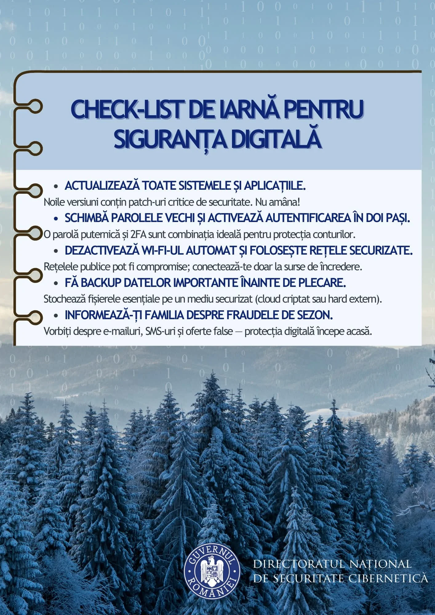 ❄️ Sezonul sărbătorilor aduce, pe lângă bucurie și oferte atractive, și o creștere a tentativelor de fraudă online. De aceea, este esențial ca utilizatorii să își verifice obiceiurile digitale și să ia măsuri simple pentru a-și proteja datele.