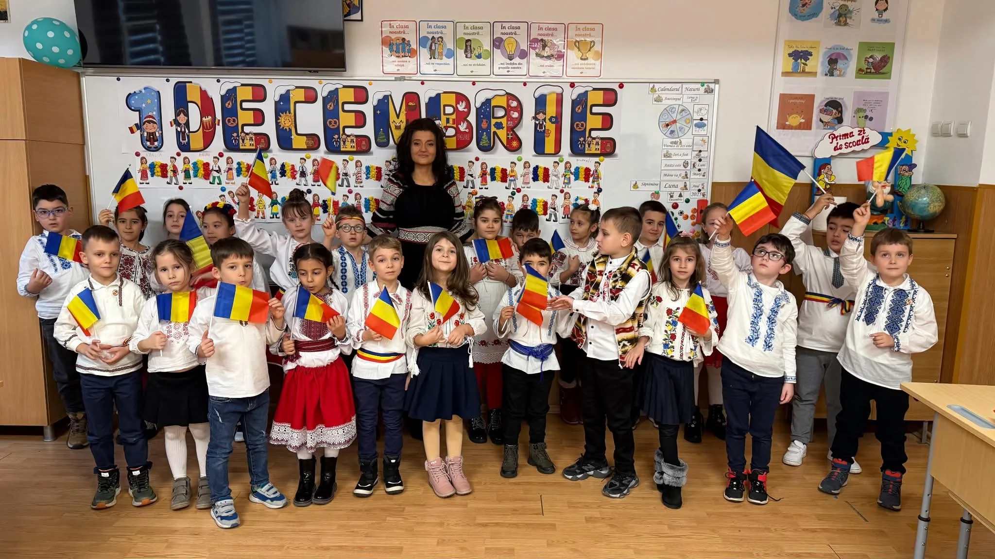 Clasa pregătitoare B a sărbătorit Ziua Națională în cele mai frumoase costume populare, cu stegulețe fluturate cu mândrie, cu poezii și cântece spuse din suflet și cu o masă tradițională care a întregit perfect atmosfera de sărbătoare.