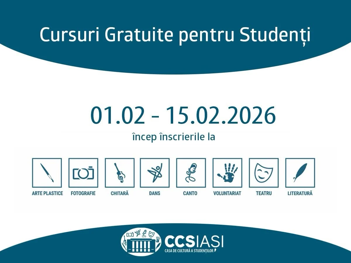 𝗔𝘂 î𝗻𝗰𝗲𝗽𝘂𝘁 î𝗻𝘀𝗰𝗿𝗶𝗲𝗿𝗶𝗹𝗲 𝗹𝗮 𝗰𝘂𝗿𝘀𝘂𝗿𝗶𝗹𝗲 𝗚𝗥𝗔𝗧𝗨𝗜𝗧𝗘 ale Casei de Cultură a Studenților Iași!