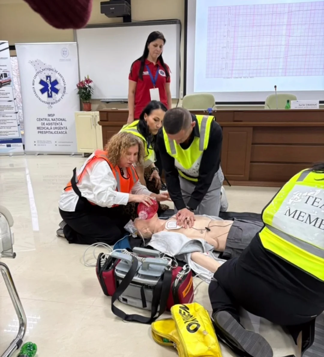 În cadrul programului Interreg, colegii noștri au participat la trainingul dedicat urgențelor cardiovasculare și… au readus la viață un „pacient” special: manechinul de resuscitare, care a rezistat eroic tuturor scenariilor. 😄⛑️