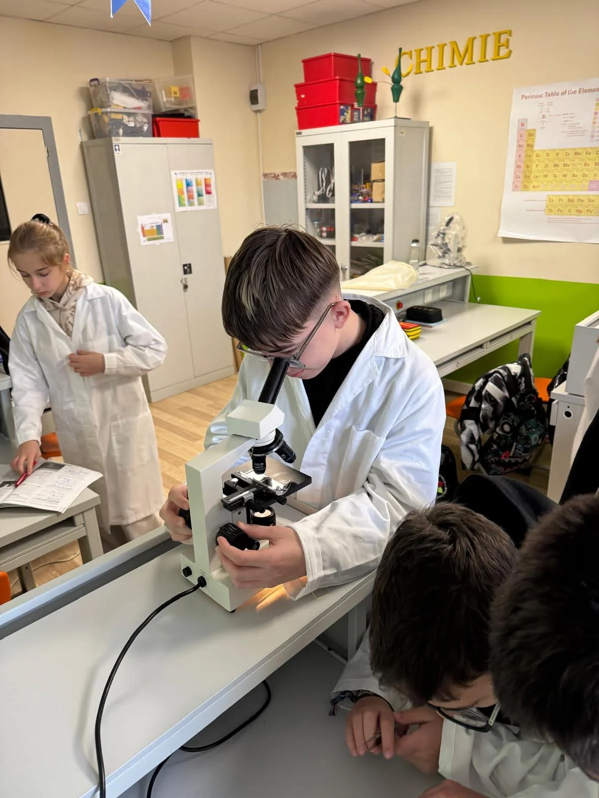 Elevii din clasa a VI-a au avut ocazia să exploreze lumea microscopică prin realizarea unor secțiuni transversale ale frunzei, folosind microtomul, pentru a analiza țesuturile implicate în fotosinteză. Această lucrare practică le-a oferit o înțelegere detaliată a proceselor care susțin viața pe Pământ. 🌱