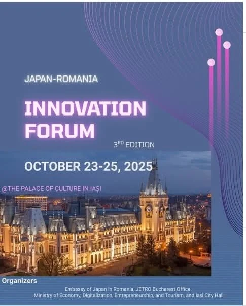 🇷🇴🇯🇵 În perioada 23–24 octombrie 2025, Primăria Municipiului Iași, Ambasada Japoniei în România, Biroul JETRO București și Ministerul Economiei, Digitalizării, Antreprenoriatului și Turismului, cu sprijinul Asociației Oamenilor de Afaceri Japonezi din România (JBA), al universităților ieșene, Camerei de Comerț și Industrie Iași și Clusterului IT Digital Innovation Zone, organizează cea de-a III-a ediție a Forumului Inovării România – Japonia.