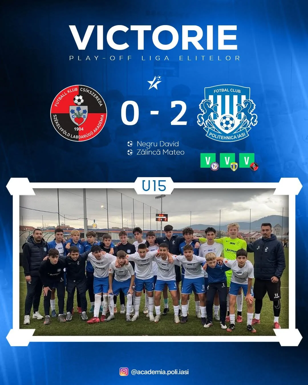 3 victorii din 3 meciuri în playoff-ul Ligii Elitelor U15 pentru Poli Iași. 🤍💙