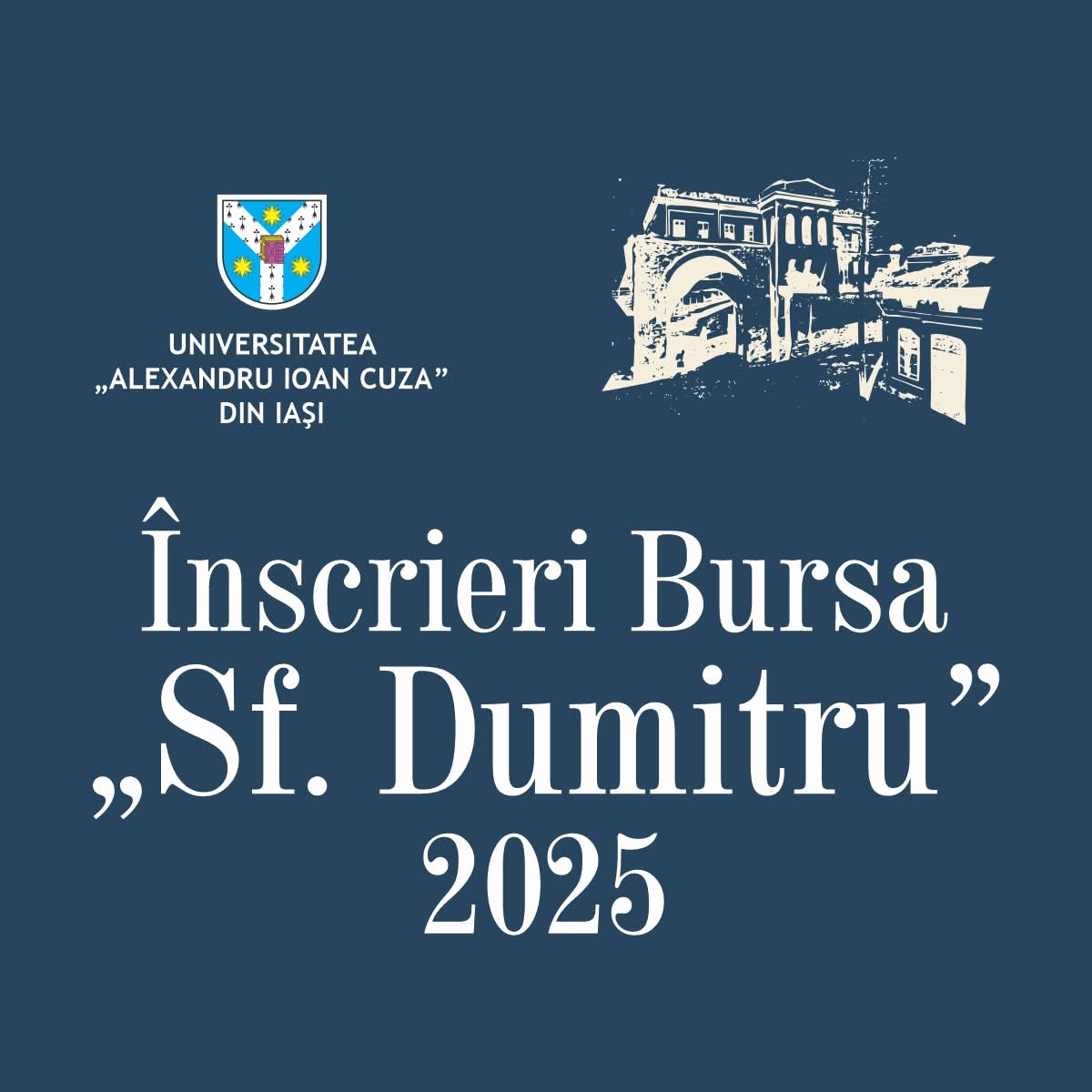 Studenţii Universităţii „Alexandru Ioan Cuza” din Iaşi (UAIC) îşi pot depune până vineri, 24 octombrie 2025, candidaturile pentru a obţine Bursa „Sfântul Dumitru”, oferită de UAIC şi prof. univ. dr. Dumitru Oprea, rector al universităţii în perioada 2000-2008.