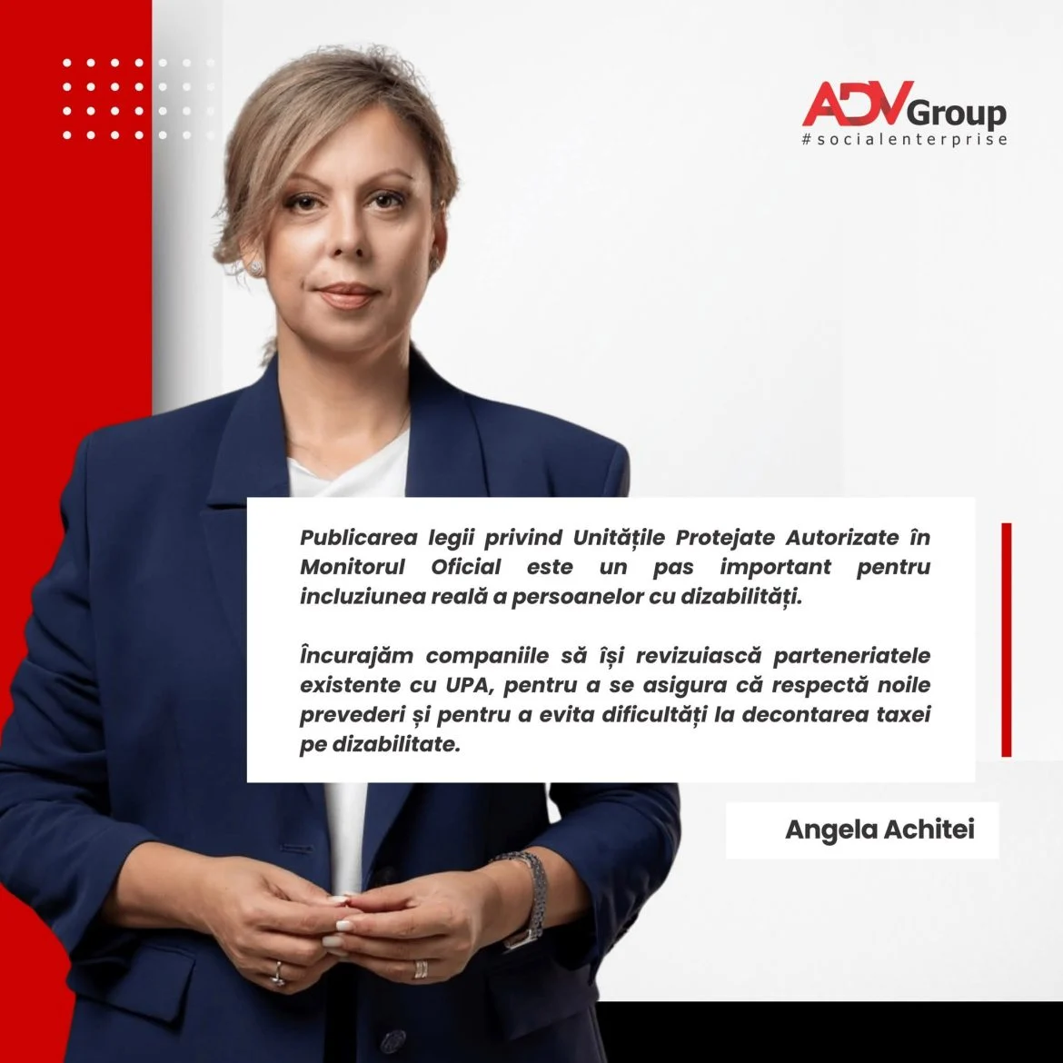 ⚠️ Încurajăm companiile să își verifice parteneriatele existente cu unitățile protejate autorizate, pentru a se asigura că respectă noile prevederi și pentru a evita dificultăți la decontarea taxei pe dizabilitate.