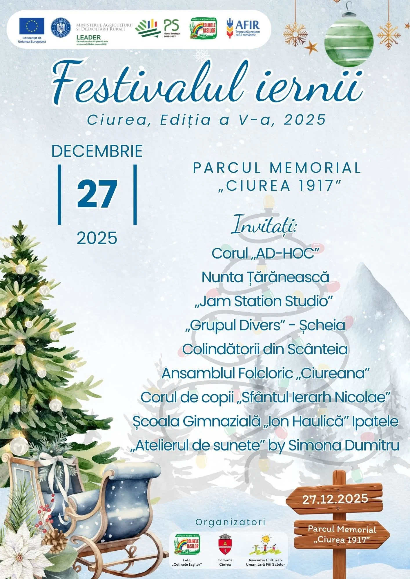 Asociația Grupul de Acțiune Locală „Colinele Iașilor” vă invită să luați parte la cea de-a V-a ediție a „Festivalului Iernii”, un eveniment dedicat sărbătorilor de Crăciun, tradițiilor autentice și spiritului comunității.