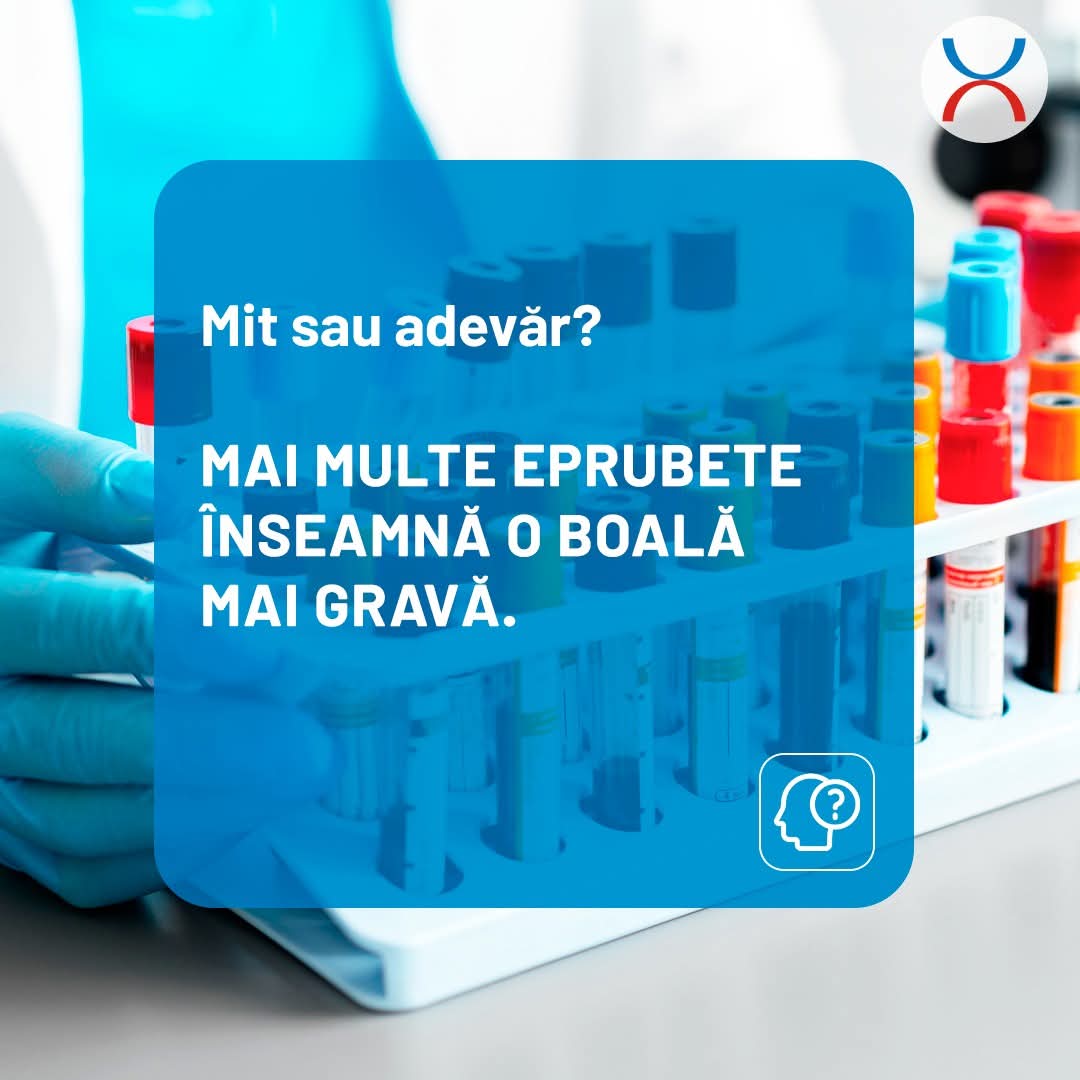 𝐀𝐃𝐄𝐕𝐀𝐑: FALS! ❌ Numărul de eprubete recoltate nu are nicio legătură cu gravitatea unei posibile afecțiuni. El este determinat strict de numărul și tipul analizelor solicitate de medicul dumneavoastră.