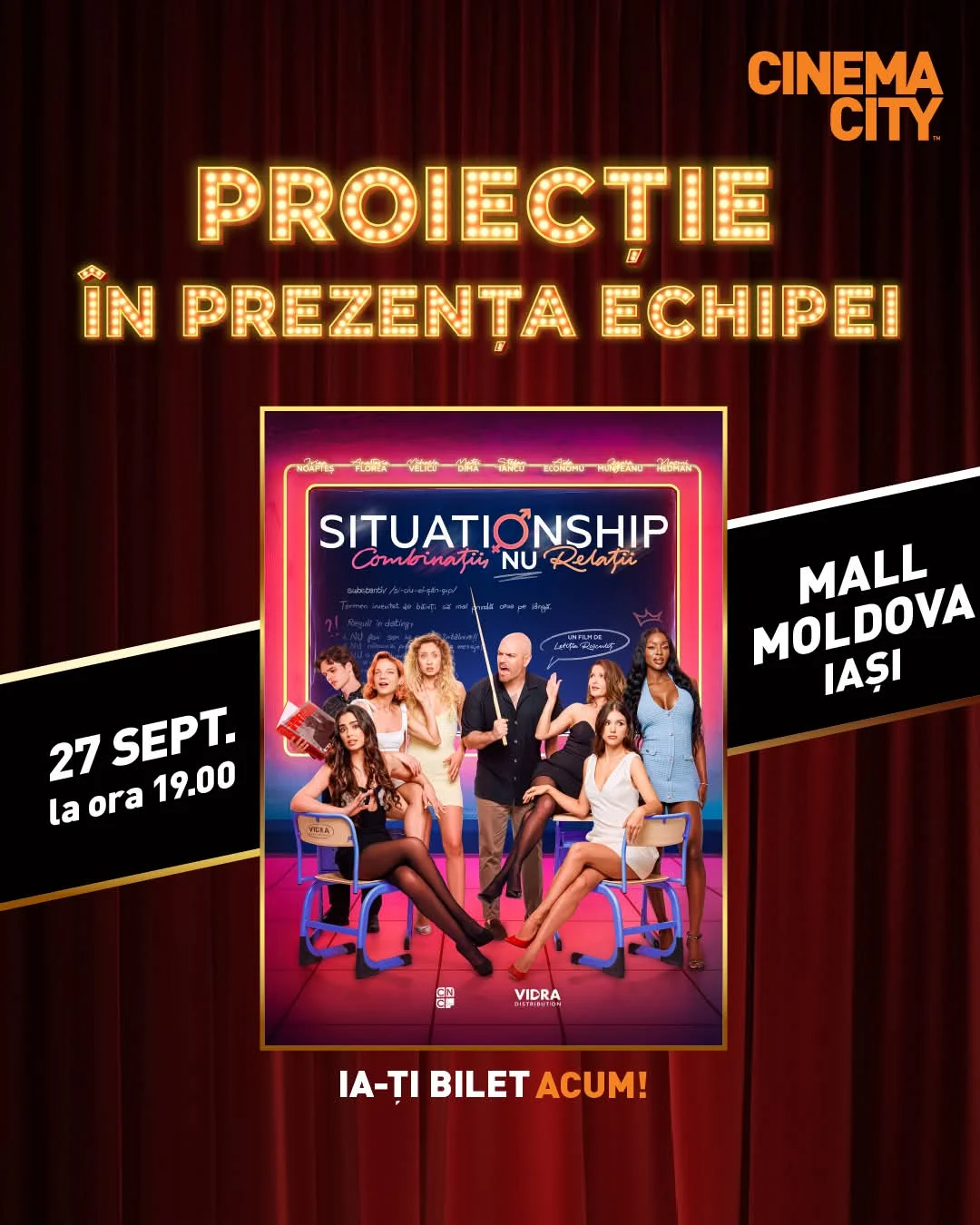 🎬✨ Cinefili, avem vești grozave! Pe 27 septembrie, începând cu ora 18:00, vă așteptăm la Cinema City Mall Moldova la un Meet & Greet special cu echipa filmului 𝐒𝐈𝐓𝐔𝐀𝐓𝐈𝐎𝐍𝐒𝐇𝐈𝐏! 🤩