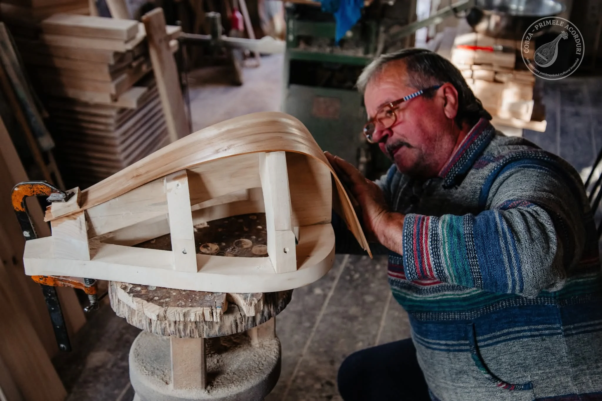 🪚Meșter recunoscut în toată zona Moldovei pentru valoarea lucrărilor sale, Gheorghe Bița s-a alăturat demersului nostru de revitalizare a cobzei țărănești cu foarte mult entuziasm. De peste jumătate de secol, mâinile lui transformă fibra lemnului în troițe, icoane și alte obiecte religioase ce poartă amprenta răbdării și atenției pentru detaliu.