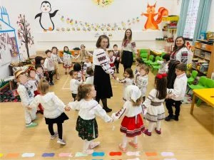 Fiecare zi din această săptămână a fost specială, în care am realizat steagul românesc folosind culorile naționale: albastru, galben și roșu, au învățat dansuri tradiționale românești, au observat obiecte vechi din popor și au copt pâine.