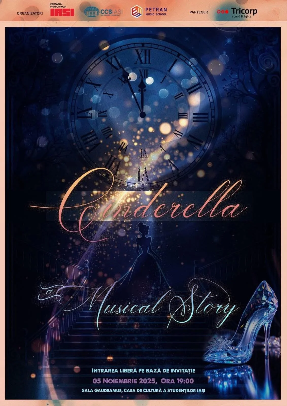 🎭 Casa de Cultură a Studenților din Iași și Petran Music School vă invită miercuri, 5 noiembrie 2025, ora 19:00, la Sala Gaudeamus, la o adaptare modernă a poveștii clasice „Cenușăreasa”.