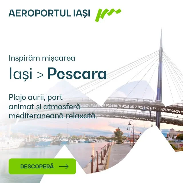 ✈️ 𝑰𝒏𝒄𝒆𝒑𝒂𝒏𝒅 𝒄𝒖 9 𝒅𝒆𝒄𝒆𝒎𝒃𝒓𝒊𝒆, partenerul nostru Wizz Air operează noi zboruri în Italia, pe ruta Iași – Pescara, cursele fiind disponibile 𝒅𝒆 𝒅𝒐𝒖𝒂 𝒐𝒓𝒊 𝒑𝒆 𝒔𝒂𝒑𝒕𝒂𝒎𝒂𝒏𝒂 – 𝑴𝒂𝒓𝒕𝒊 𝒔𝒊 𝑺𝒂𝒎𝒃𝒂𝒕𝒂.