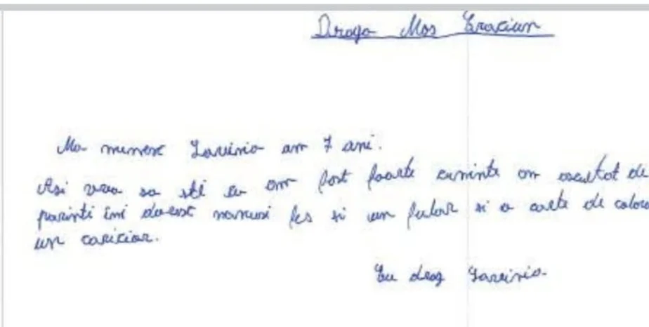 Au selectat, din linkul publicat de Asociația Fiecare Contează, scrisoarea nr. 40, prin care Lavinia, o fetiță de 7 ani, a povestit ce își dorește de la Moș Crăciun, și au decis să îi îndeplinească dorința de sărbători.