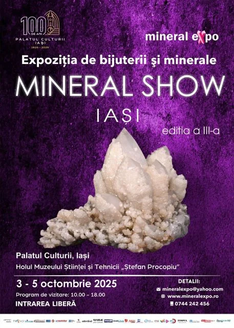#MineralShow, eveniment dedicat pasionaților de cristale și bijuterii, organizat de Complexul Muzeal Național „Moldova” Iași, în colaborare cu Asociația „Mineral Expo”, începe vineri, 3 octombrie 2025. #PalatulCulturii Muzeul Ştiinţei şi …