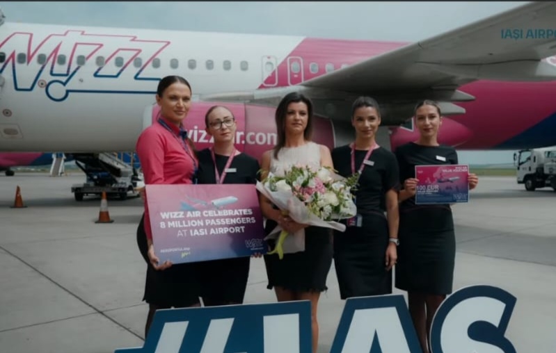 Pasagerul cu numărul 8.000.000 al WizzAir, sărbătorit pe Aeroportul Iași