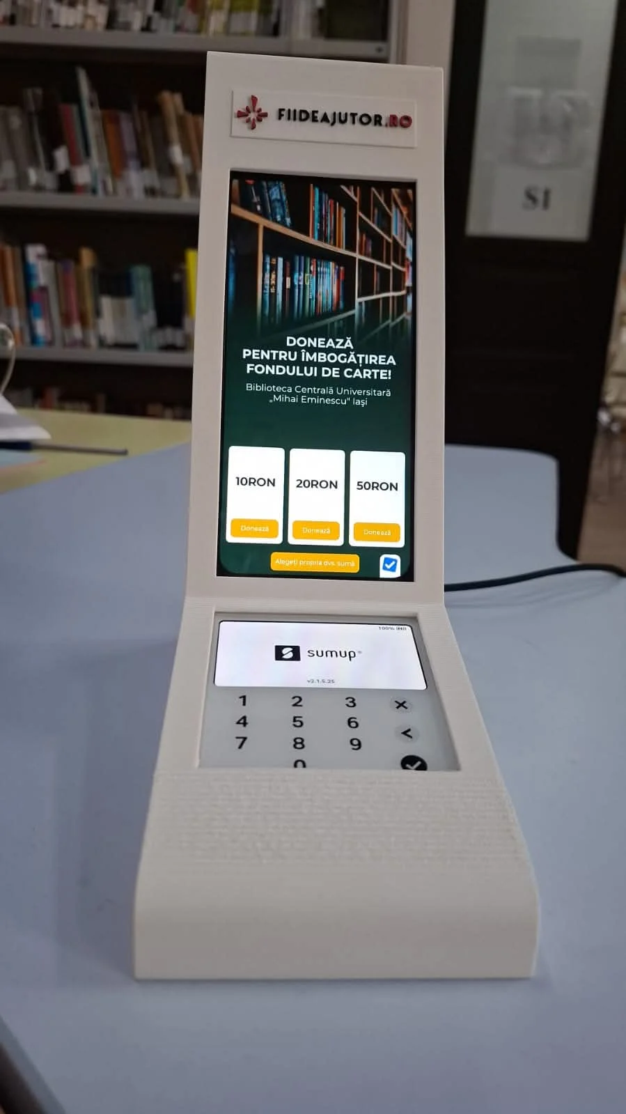 Prin implicarea Fundației umanitare care coordonează platforma 𝐅𝐈𝐈 𝐃𝐄 𝐀𝐉𝐔𝐓𝐎𝐑, au fost amplasate 4 aparate de donații pentru susținerea campaniei. Acestea sunt disponibile în 𝐬𝐞𝐝𝐢𝐮𝐥 𝐜𝐞𝐧𝐭𝐫𝐚𝐥, precum și în 𝐅𝐢𝐥𝐢𝐚𝐥𝐚 𝐝𝐞 𝐃𝐫𝐞𝐩𝐭 și 𝐅𝐢𝐥𝐢𝐚𝐥𝐚 𝐝𝐞 𝐏𝐬𝐢𝐡𝐨-𝐏𝐞𝐝𝐚𝐠𝐨𝐠𝐢𝐞, 𝐄𝐝𝐮𝐜𝐚𝐭𝐢𝐞 𝐅𝐢𝐳𝐢𝐜𝐚 𝐬𝐢 𝐒𝐩𝐨𝐫𝐭. Contribuțiile colectate vor sprijini înnoirea colecțiilor și modernizarea serviciilor de lectură.