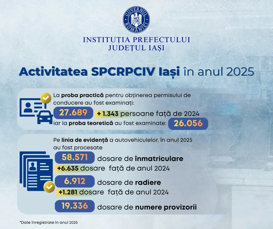 Anul 2025 a fost caracterizat de un volum ridicat de activitate la nivelul 𝐒𝐞𝐫𝐯𝐢𝐜𝐢𝐮𝐥𝐮𝐢 𝐏𝐮𝐛𝐥𝐢𝐜 𝐂𝐨𝐦𝐮𝐧𝐢𝐭𝐚𝐫 𝐑𝐞𝐠𝐢𝐦 𝐏𝐞𝐫𝐦𝐢𝐬𝐞 𝐝𝐞 𝐂𝐨𝐧𝐝𝐮𝐜𝐞𝐫𝐞 𝐬𝐢 𝐈𝐧𝐦𝐚𝐭𝐫𝐢𝐜𝐮𝐥𝐚𝐫𝐞 𝐚 𝐕𝐞𝐡𝐢𝐜𝐮𝐥𝐞𝐥𝐨𝐫 𝐈𝐚𝐬𝐢, rezultatele reflectând implicarea constantă a personalului și capacitatea de a răspunde eficient solicitărilor cetățenilor.