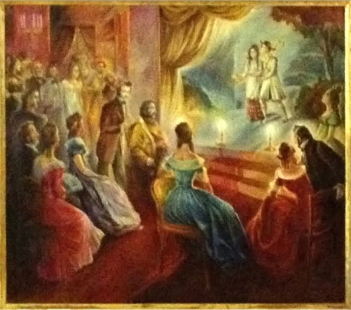 Pe 27 decembrie 1816, la Iași, a fost reprezentată 𝐜𝐞𝐚 𝐝𝐢𝐧𝐭𝐚𝐢 𝐩𝐢𝐞𝐬𝐚 𝐝𝐞 𝐭𝐞𝐚𝐭𝐫𝐮 𝐢𝐧 𝐥𝐢𝐦𝐛𝐚 𝐫𝐨𝐦𝐚𝐧𝐚: pastorala „𝐌𝐢𝐫𝐭𝐢𝐥 𝐬𝐢 𝐇𝐥𝐨𝐞”, prelucrare după Gessner și Florian, tradusă din limba franceză de Gheorghe Asachi. Din distribuție făceau parte Elena Ghica (păstorița Hloe), Prințul Ghica (Mirtil), Costăchel Sturdza (Lisiz). Spectacolul a avut loc pe o scenă improvizată, în casa boierească a hatmanului Costache Ghica.
