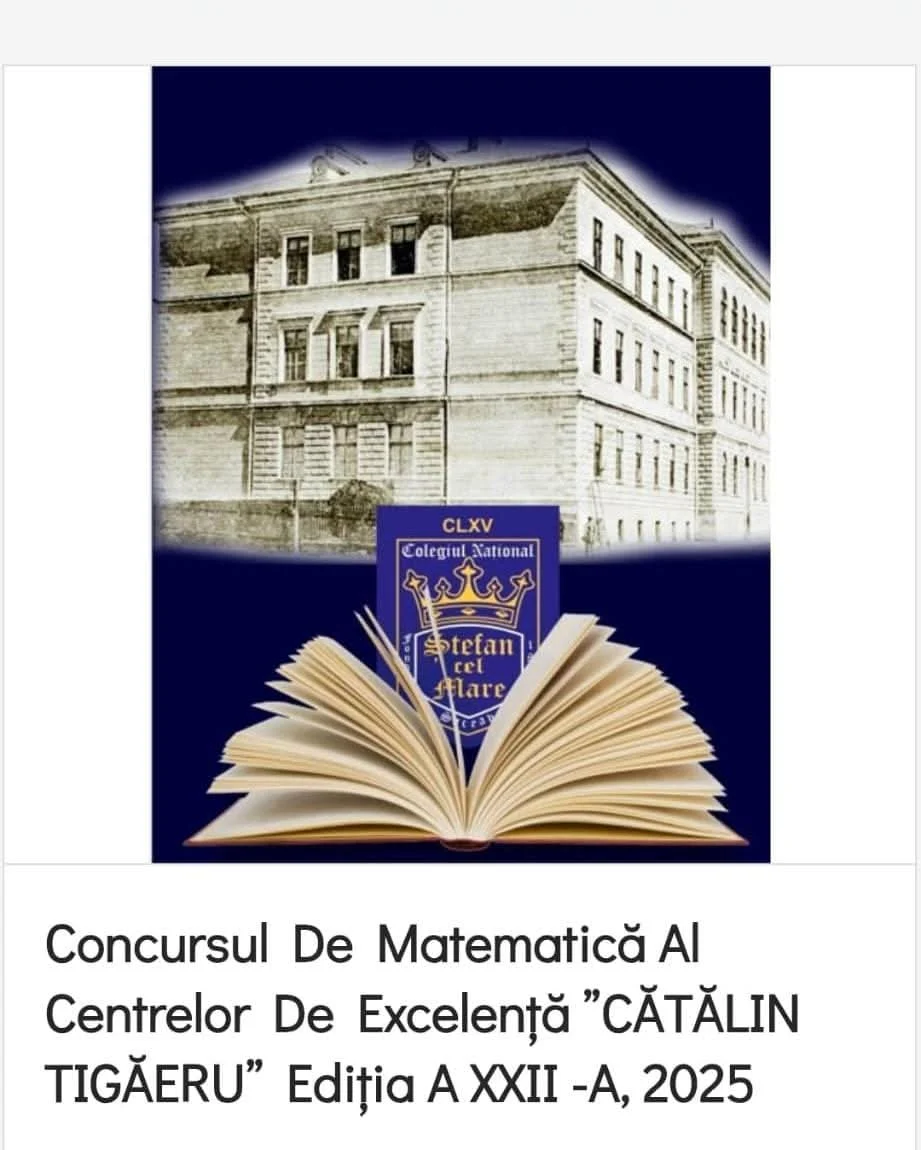 Vineri, 7 noiembrie 2025, a avut loc a XXII-a ediție a Concursului Interjudețean de matematică al Centrelor de Excelență “CĂTĂLIN ȚIGĂERU”, inclus în calendarul Societății de Științe Matematice din România, organizat de Colegiul Național “Ștefan cel Mare” din Suceava.