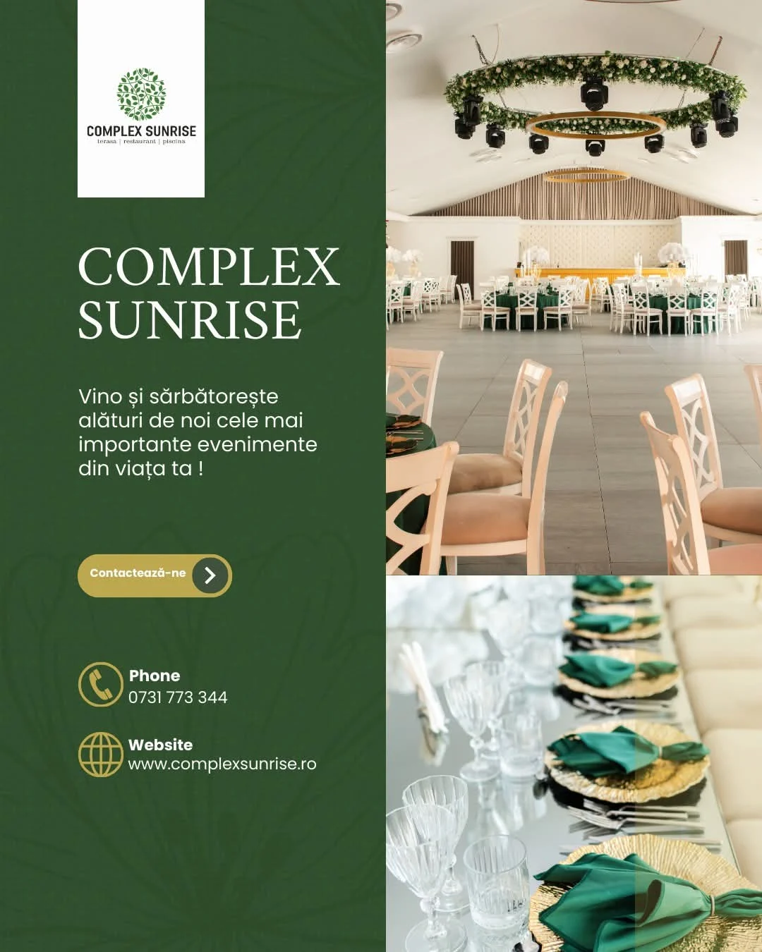 ✨ La Complex Sunrise, eleganța întâlnește confortul, iar fiecare detaliu este creat pentru ca tu să trăiești evenimentul fără griji. Servicii all inclusive, atmosferă rafinată și momente de neuitat – alege locul unde visele devin realitate. 🫶🏻