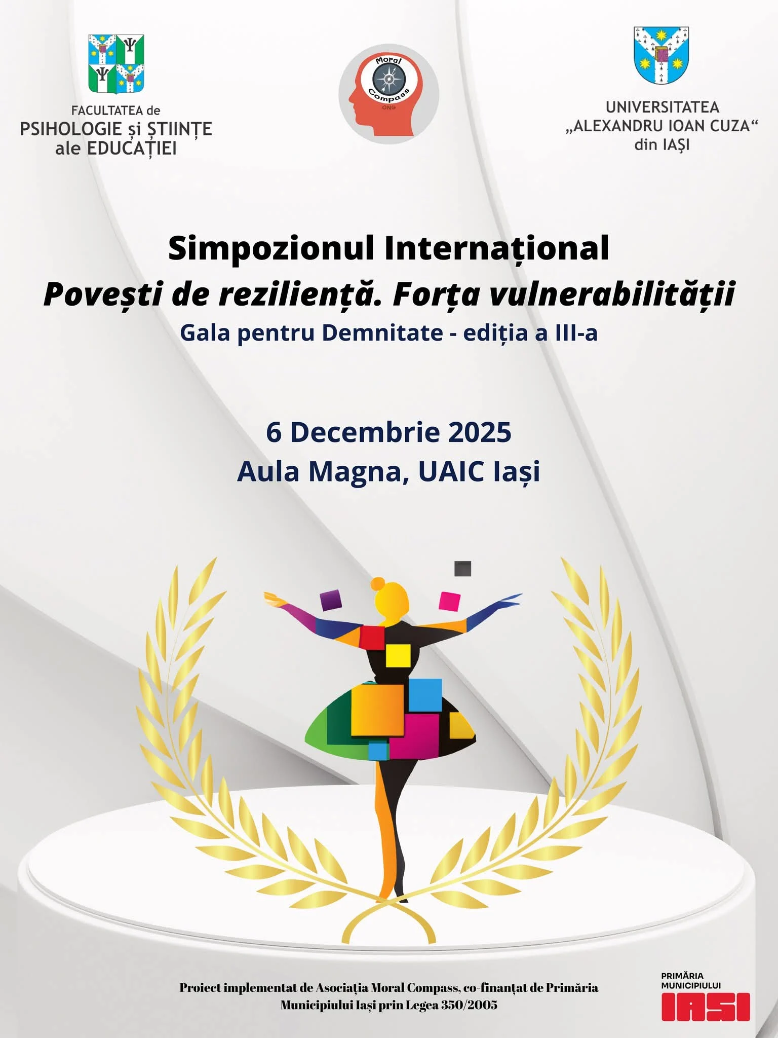 Pe 6 decembrie 2025, în Aula Magna a Universității „Alexandru Ioan Cuza” din Iași, are loc Simpozionul Internațional „Povești de reziliență. Forța vulnerabilității” – Gala pentru Demnitate, ediția a III-a, un eveniment dedicat dialogului despre reziliență, vulnerabilitate, demnitate și incluziune.