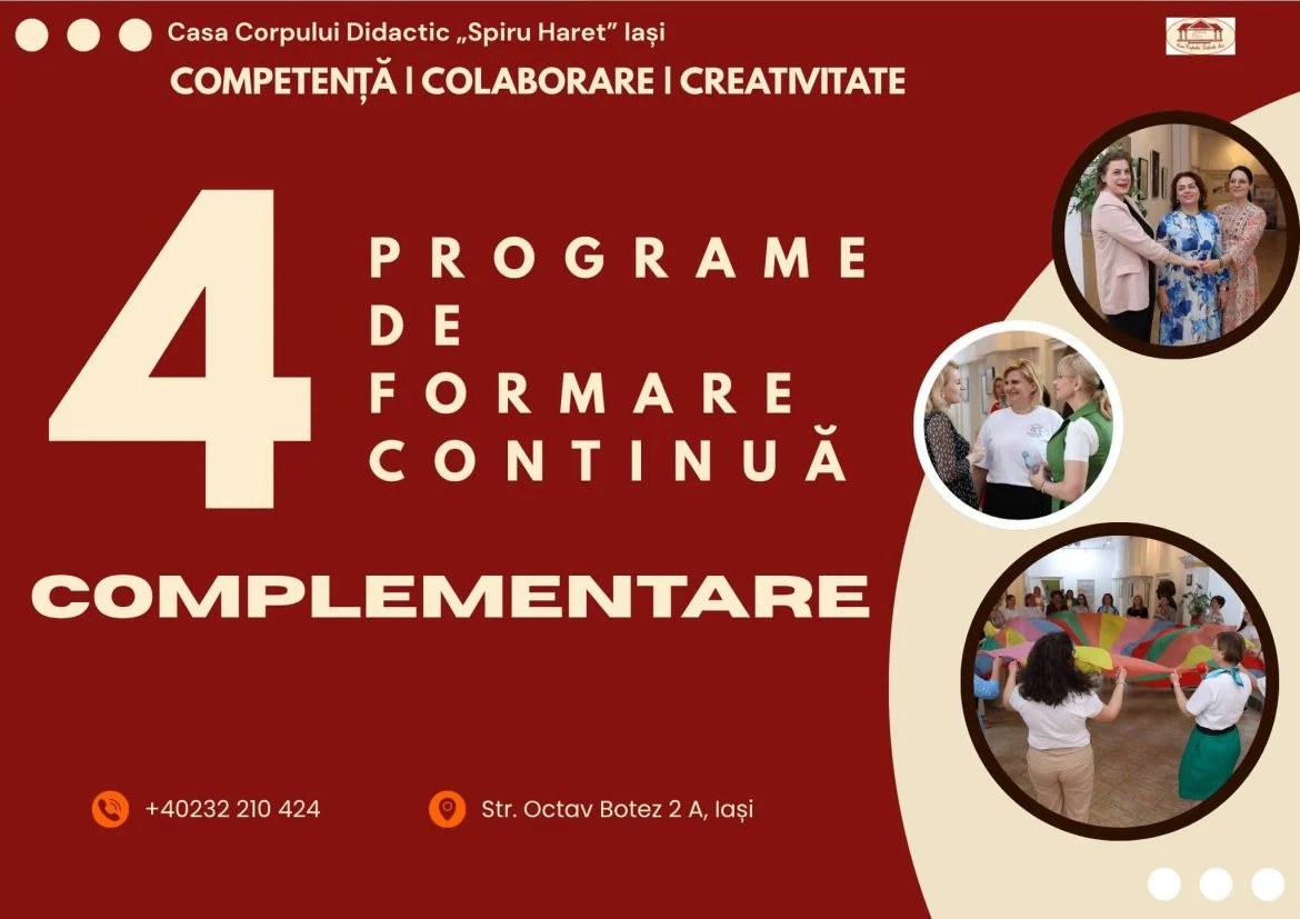 📌 Casa Corpului Didactic „Spiru Haret” Iași vă așteaptă să vă înscrieți la cursurile acreditate și complementare din oferta de formare pentru anul școlar 2025–2026.