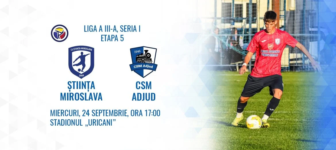 🤍💙 Stiinta Miroslava întâlnește CSM Adjud1946 într-un nou meci important. Vă invităm să veniți în tribune și să susținem împreună echipa locală. Hai să arătăm că Miroslava știe să fie aproape de sport și de jucătorii săi. Ne vedem pe stadion!