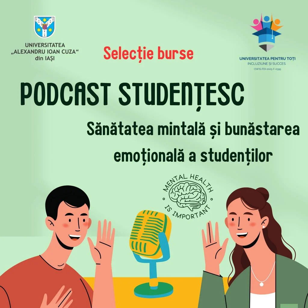 10 studenți UAIC vor primi câte o bursă de 600 lei pentru a produce, în echipă, podcast-uri despre subiecte din sfera sănătății mintale, relevante pentru mediul universitar.