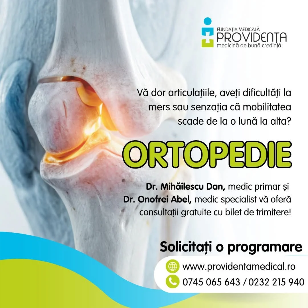 🦵👉 𝐀𝐟𝐞𝐜𝐭𝐢𝐮𝐧𝐢𝐥𝐞 𝐨𝐫𝐭𝐨𝐩𝐞𝐝𝐢𝐜𝐞 pot apărea treptat, dar tratate la timp, pot fi gestionate eficient. Echipa noastră formată din 👨‍⚕️ 𝐃𝐫. 𝐌𝐢𝐡𝐚𝐢𝐥𝐞𝐬𝐜𝐮 𝐃𝐚𝐧, medic primar și 👨‍⚕️ 𝐃𝐫. 𝐎𝐧𝐨𝐟𝐫𝐞𝐢 𝐀𝐛𝐞𝐥, medic specialist. oferă consultații gratuite în baza biletului de trimitere, pentru diagnosticarea durerilor articulare, a inflamațiilor și a problemelor de coloană.