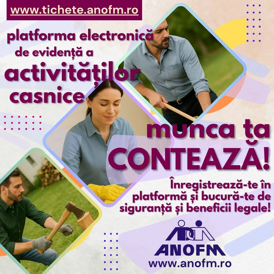 Pentru mai multe informații sau pentru a achiziționa tichete, contactează agențiile din județul tău. Vezi lista agențiilor pentru ocuparea forței de muncă pe site-ul nostru sau accesează platforma pentru detalii!