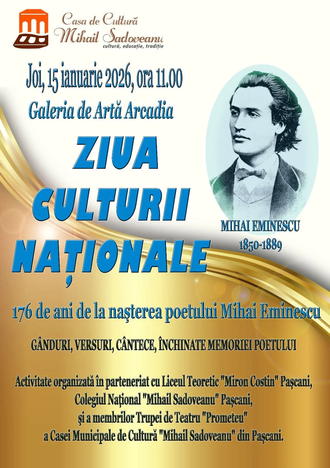 29 Vă așteptăm cu drag! Informație oficială publicată de Colegiul Naţional Mihail Sadoveanu Pașcani Hai pe canalul media preferat, WhatsApp sau Telegram, pentru a urmări „Pagina de Iași” – doar informații oficiale din comunitatea ieșeană. Șapte școli din județ s-au întrecut în concursul “Lecturi sadoveniene” Crosul toamnei, ediția a XVII-a, la Pașcani, duminică, 12 octombrie Zilele Culturii Române: “Olimpiada de limbă română curată”, la Școala “Ion Creangă” din Iași Liceul “Miron Costin” Pașcani este Școală Ambasador a Parlamentului European Târgul mironist de Crăciun: sunet, gust și culoare Elevi învingători și profesori extraordinari la Colegiul “Sadoveanu” Pașcani, de Ziua Națională a României Partajează FacebookLinkedinWhatsappTelegram Oficial Postarea anterioară Viitorii mecanici auto se pregătesc la Liceul UCECOM din Iași Postarea următoare Consultație ortopedică gratuită, cu bilet de trimitere, la Fundația Medicală Providența Te-ar putea interesa și Fonoteca din tramvai – ediția revizuită de Ziua Culturii Naționale „Floare Albastră” la Palatul Braunstein: Iașul celebrează Ziua Culturii Naționale... Programul Zilei Culturii Naționale la Iași – joi, 15 ianuarie Zilele Culturii Române: “Olimpiada de limbă română curată”, la Școala... Elevii Colegiului “Sadoveanu” din Pașcani l-au colindat pe Mitropolitul Moldovei... Târgul mironist de Crăciun: sunet, gust și culoare Clubul de mentorat își deschide porțile la Colegiul “Sadoveanu” din... Elevi învingători și profesori extraordinari la Colegiul “Sadoveanu” Pașcani, de... Liceul “Miron Costin” Pașcani este Școală Ambasador a Parlamentului European Balul bobocilor la Colegiul “Sadoveanu” din Pașcani Câștigătoarea Festivalului concurs “Din bătrâni, din oameni buni”-ediția a XVI-a... Șapte școli din județ s-au întrecut în concursul “Lecturi sadoveniene” “Împreună prindem curaj” – Program de prevenire a violenței și... Trupa Liceului “Miron Costin” Pașcani își mărește echipa Zilele Colegiului Național “Mihail Sadoveanu” Pașcani FESTOVLEAC 2025 Crosul toamnei, ediția a XVII-a, la Pașcani, duminică, 12 octombrie